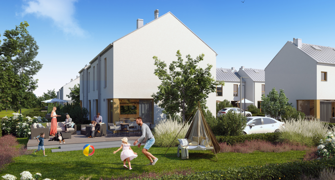Własne ogródki, nawet do 217 m2 i park kieszonkowy na osiedlu stworzą zdrowe, bezpieczne i pełne harmonii otoczenie dla rodzin z dziećmi.