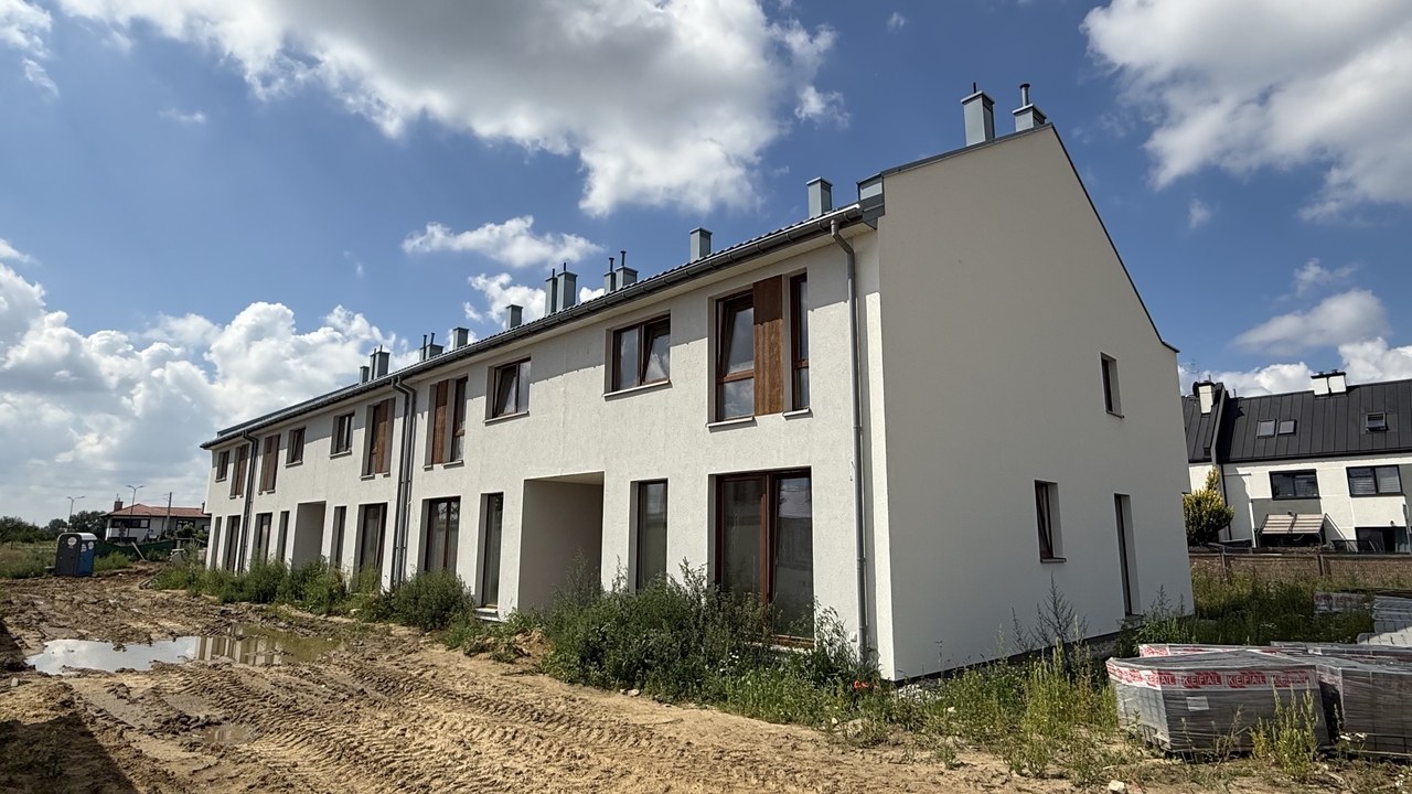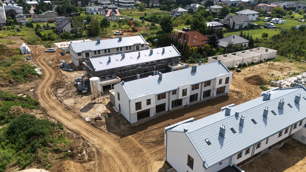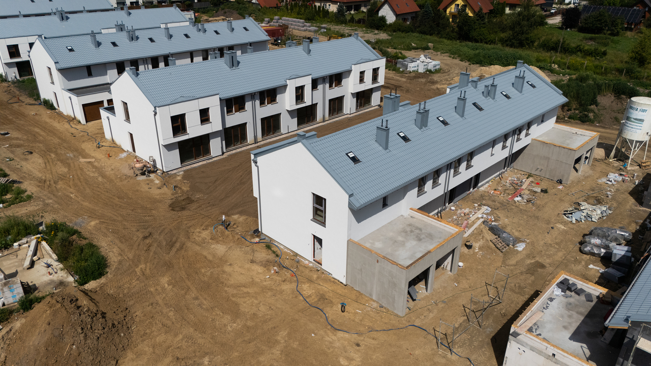 – w 4 szeregach (do budynku nr 24, lewa strona) gotowe są tynki i wylewki,