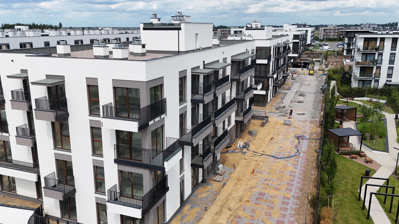– Budynki Oslo i Sztokholm – prowadzone są prace malarskie wewnątrz, układanie płytek na balkonach oraz wykończenia w garażu. Montujemy również zadaszenia ramp i prowadzimy prace brukarskie wokół budynków.