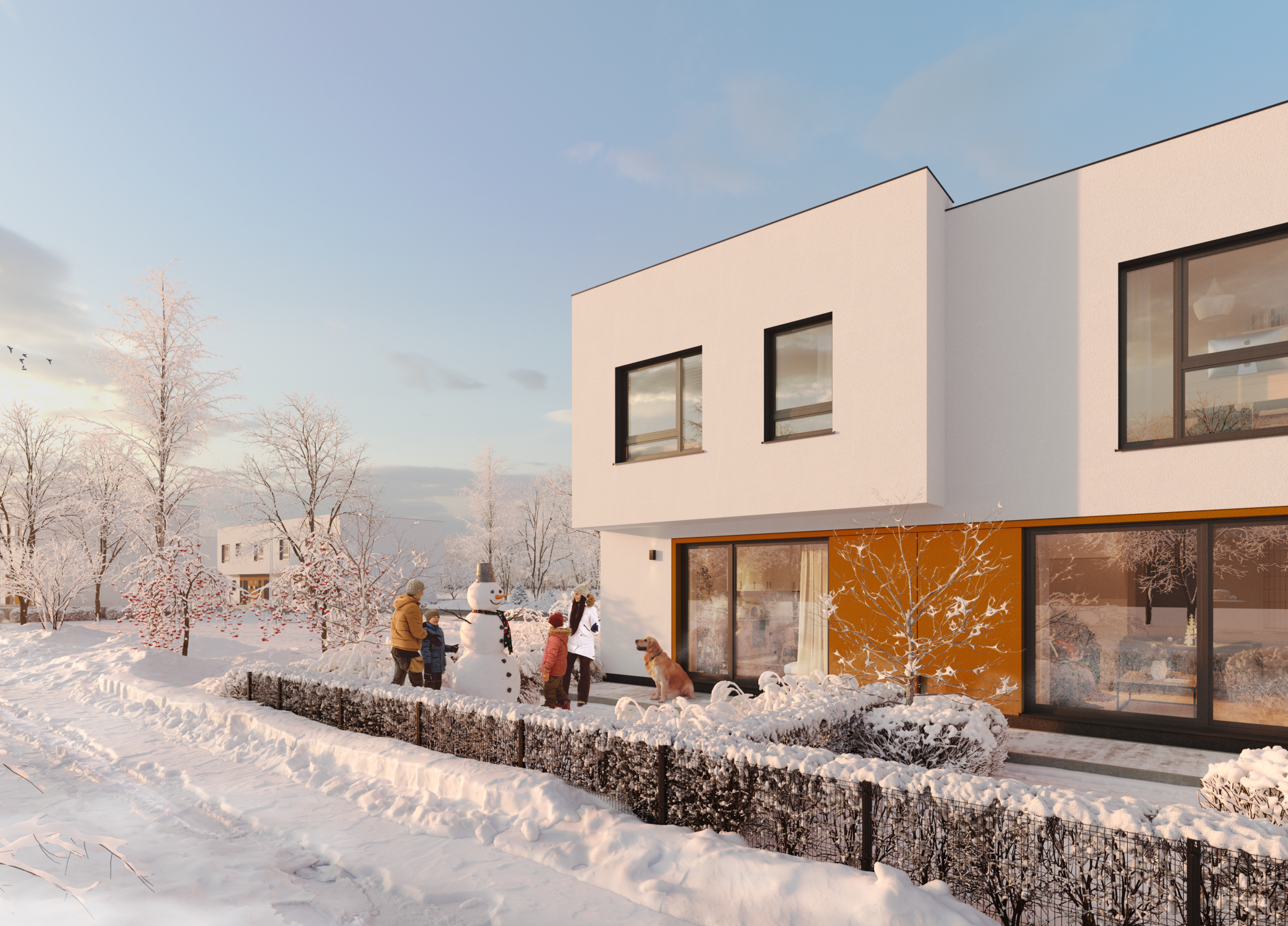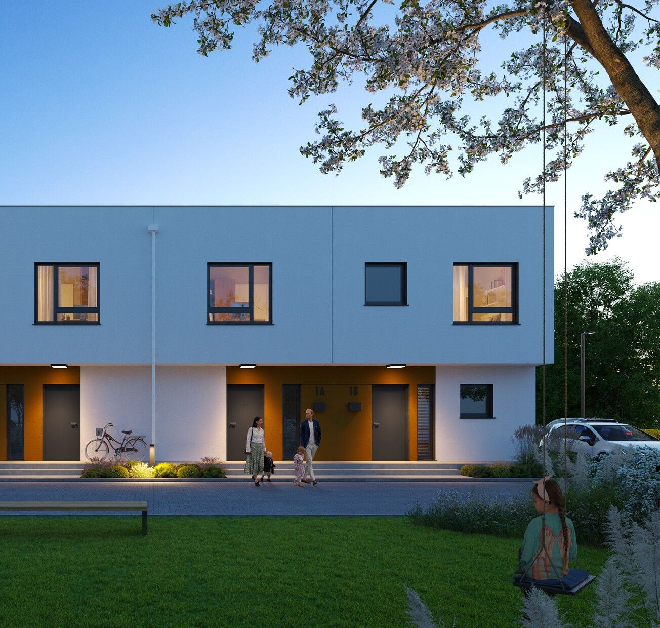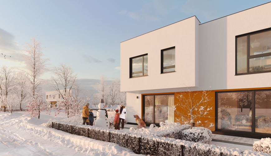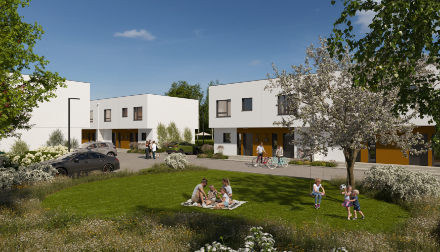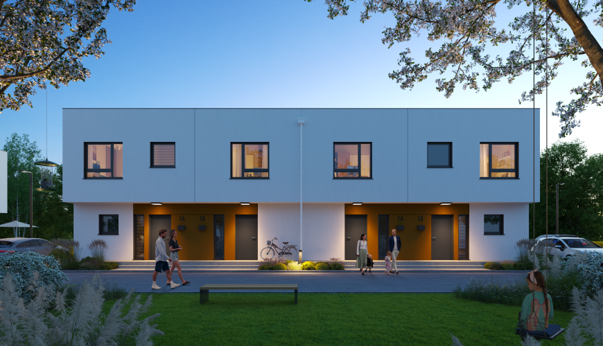 The development includes 60 two-story homes with total areas of 62 or 74 m², each with its own garden. In the central part of the estate, a naturally preserved green zone remains, which gives it a unique character and positively influences the microclimate. A forest grove stretches nearby – here, nature is within easy reach.