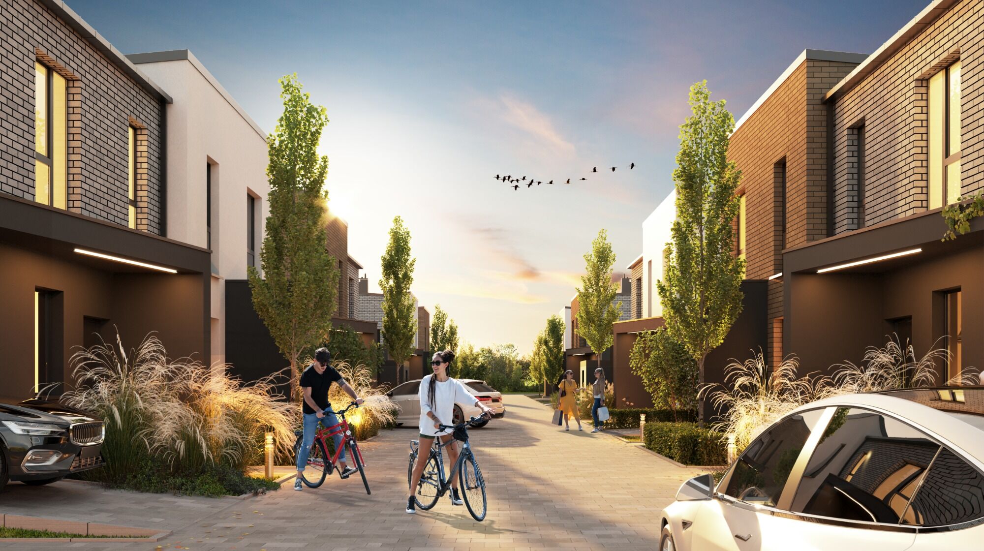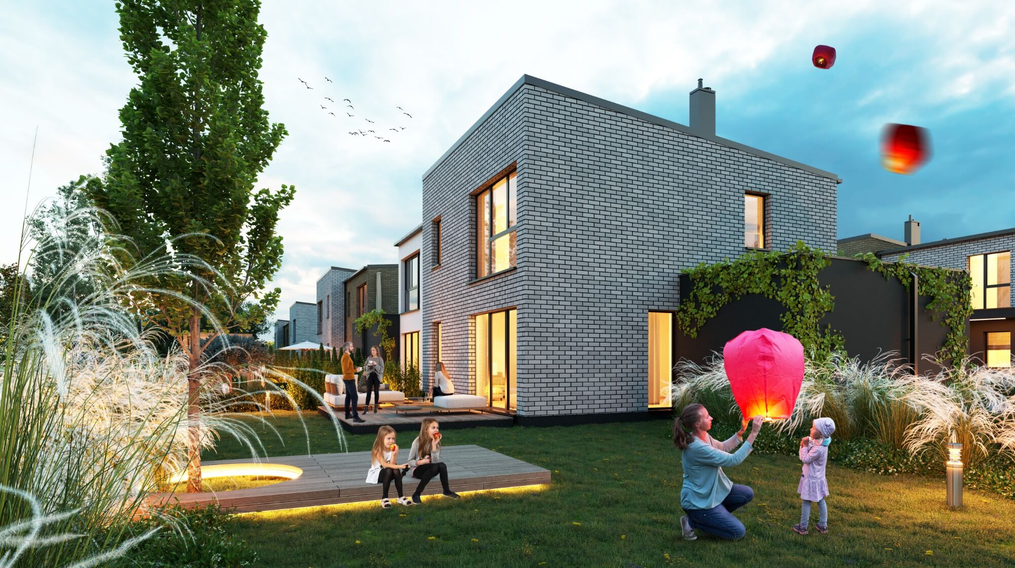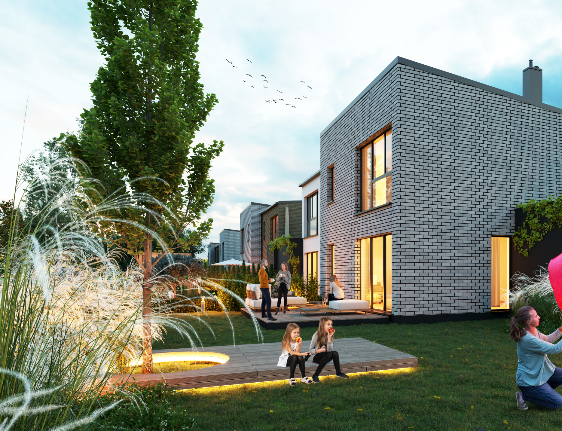 Total areas from 109 to 134 m², 4 or 5 rooms, spacious gardens and garages – this is a place where a large family will truly feel at home.