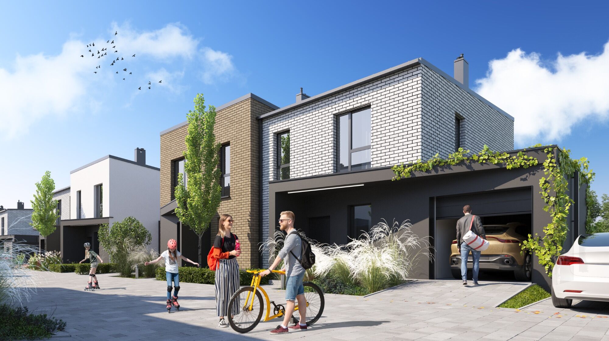 This estate is designed for families with greater needs – offering space, functionality, and modern design amidst greenery. Its location between two streets – Dmowskiego and Widok – ensures convenient access from both sides, and private garages (some with direct access from the home) provide undeniable everyday comfort.