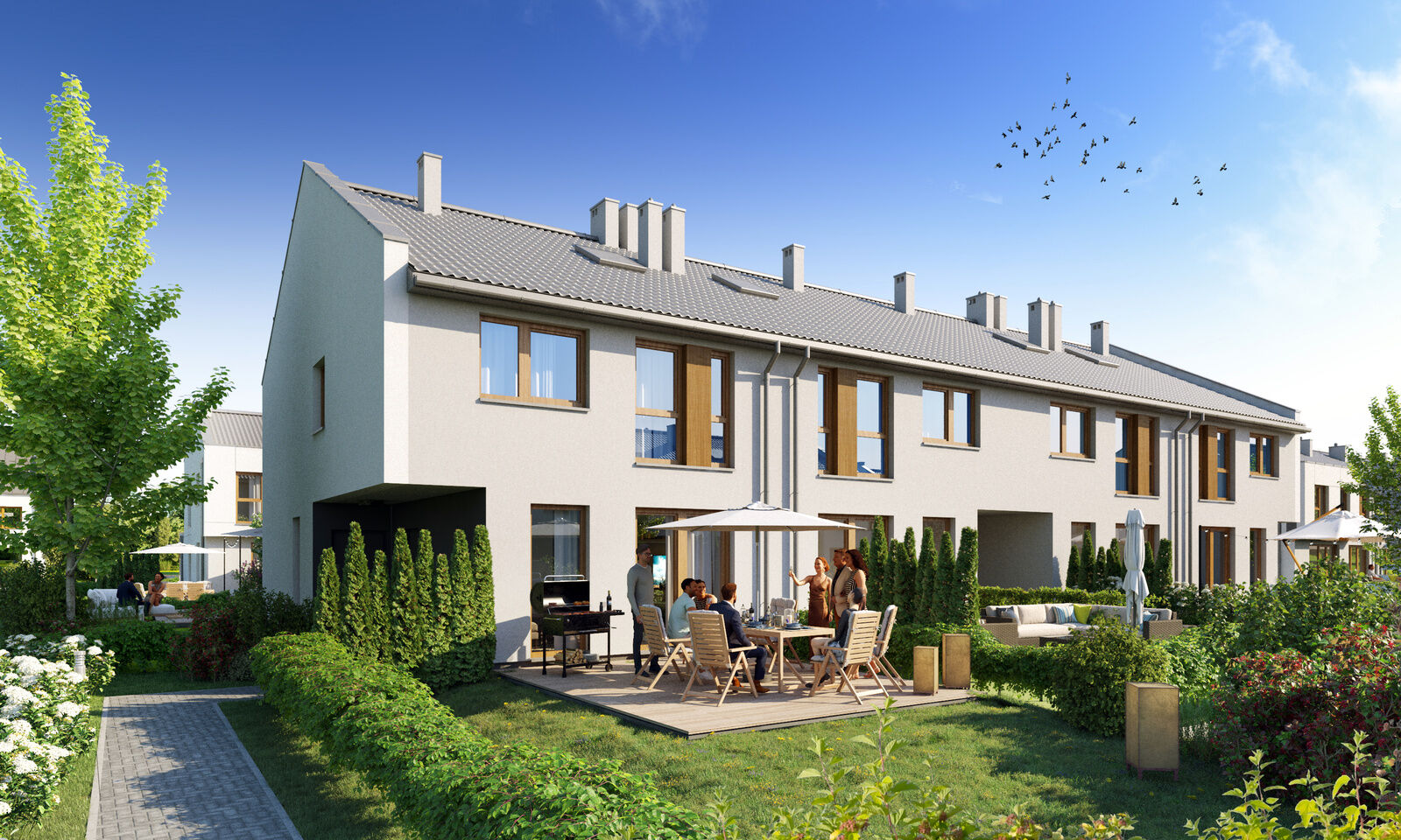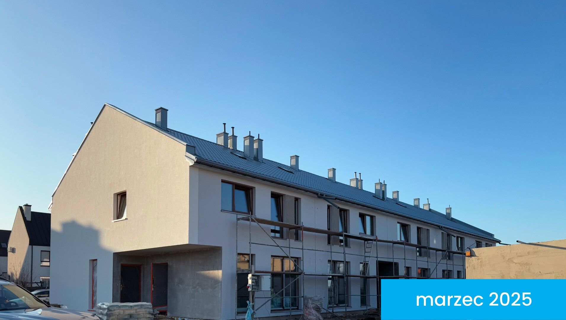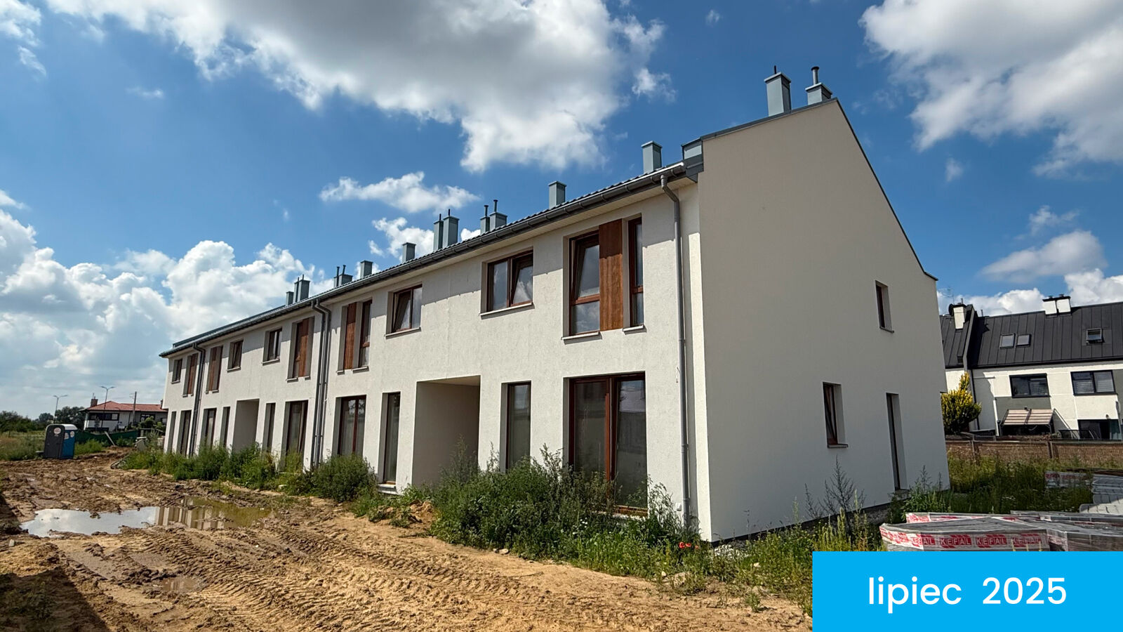 The move-in date for Ogrody Przyjaciół 5 is approaching soon. The construction of the estate in Białołęka is proceeding in stages, and the key handover for the first terraced units is planned for early 2026. Subsequent stages will be handed over progressively, after the completion of construction works and obtaining the occupancy permit.