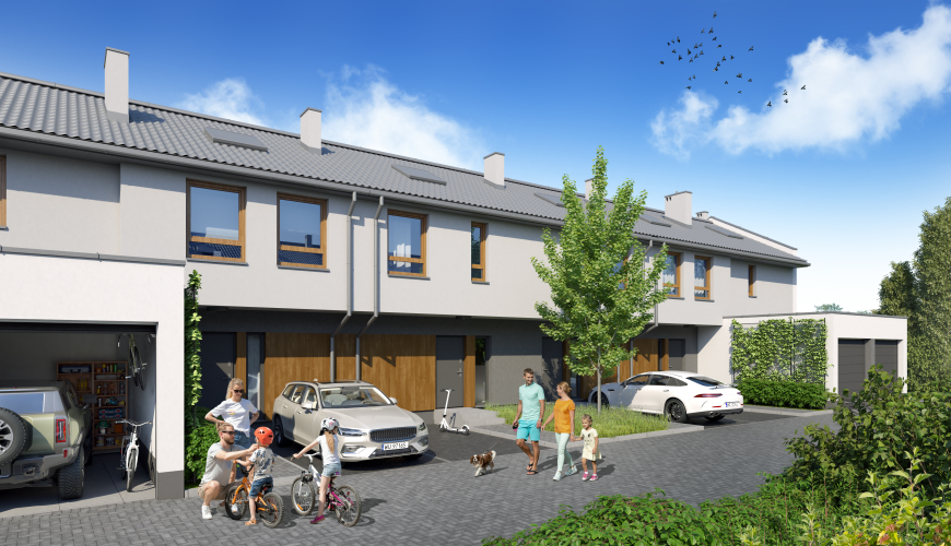 Here, 106 terraced homes will be built, with total areas ranging from 64 to 82 m², each with a private garden. Some of them are homes with a garage, while others have a parking space right at the entrance. Garden sizes range from 22 m² to 127 m². It’s up to your imagination whether you arrange a quiet corner perfect for reading books, or a place that friends and neighbors will gladly visit.