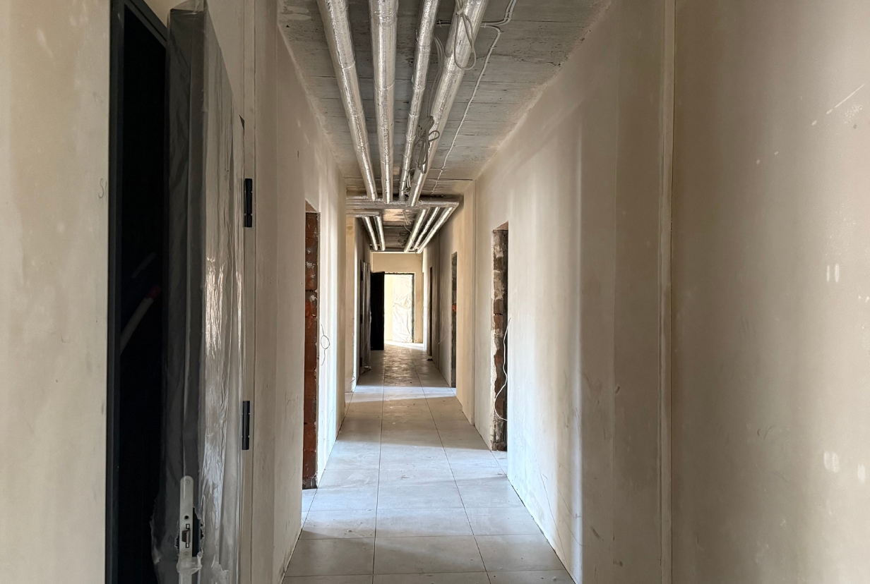 Stockholm building – we’re finishing façade and flooring works. In the garage, finishing works are ongoing, and we’ve started tiling in the common areas. Here too, nearly 90% of the apartments have already been sold.