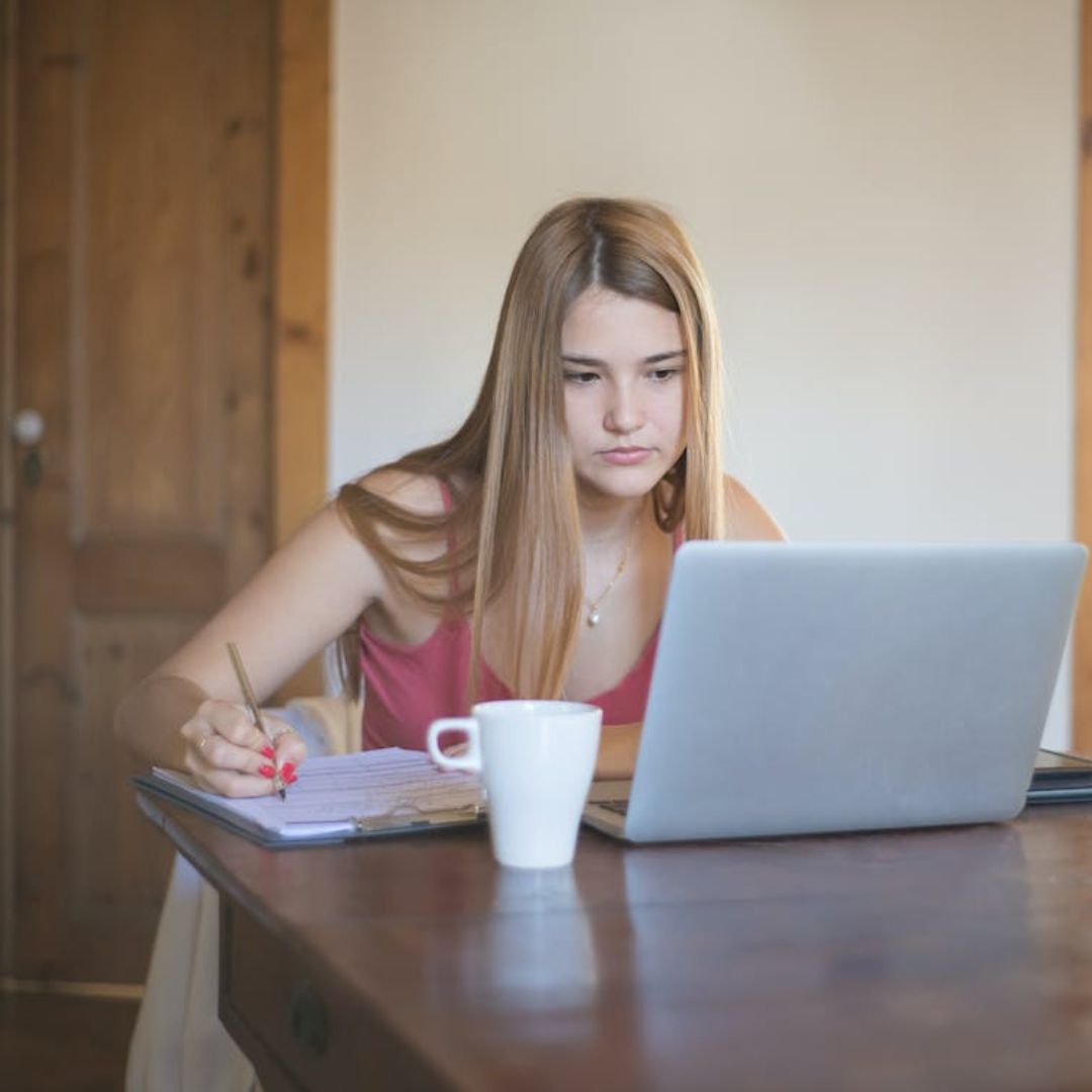 Avoid learning at a low coffee table; instead, invest in a desk with the right (preferably adjustable) height to maintain a proper sitting posture.