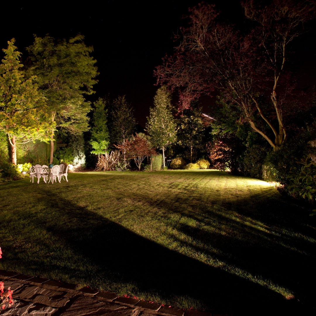 Spotlights are ideal for illuminating specific garden features such as trees, shrubs, or fountains.