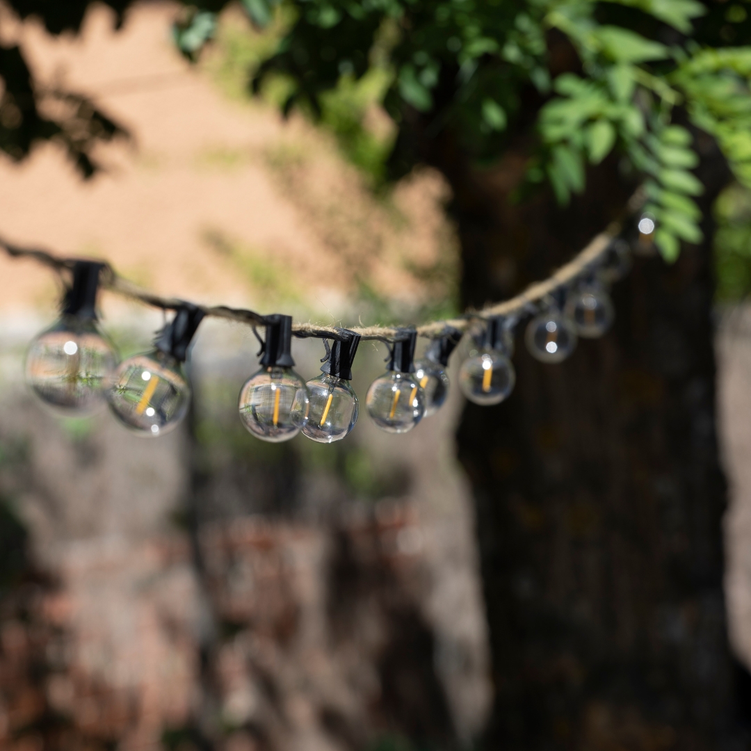 Installing such lamps requires proper mounting to the ceiling of the terrace, pergola, or tree branches.