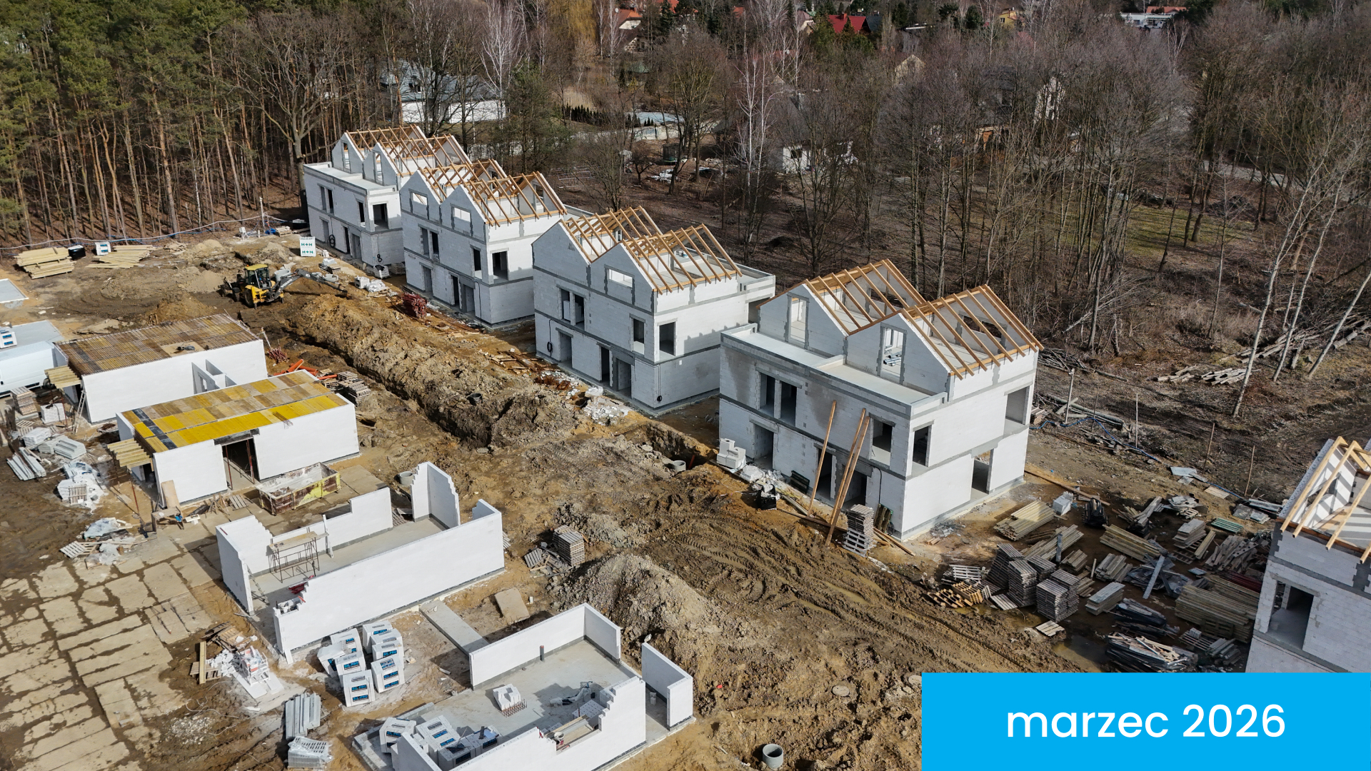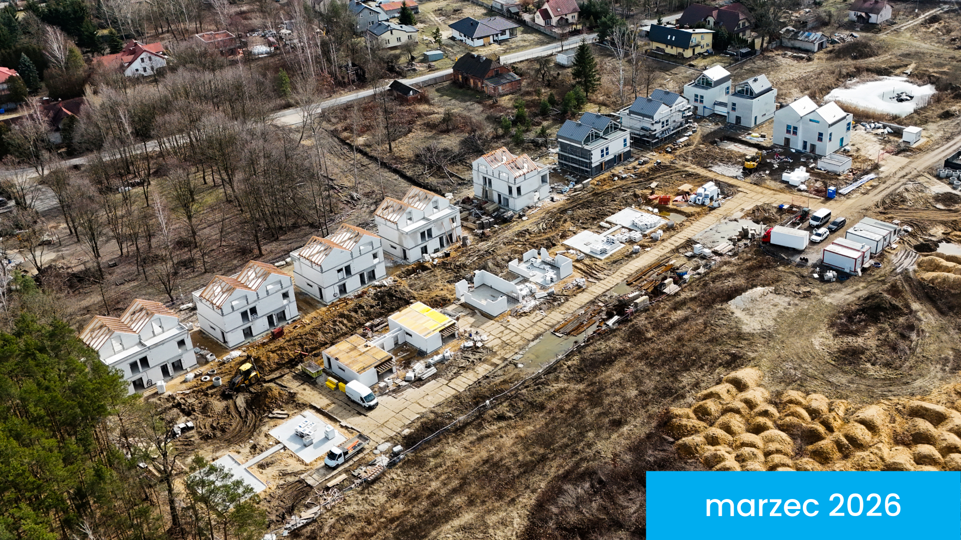 Osiedle Wille przy Lesie powstaje etapami. Domy, których budowę rozpoczęliśmy najwcześniej, planujemy oddać w IV kwartale 2026 roku, a kolejne lokale będą przekazywane mieszkańcom sukcesywnie po uzyskaniu pozwolenia na użytkowanie.