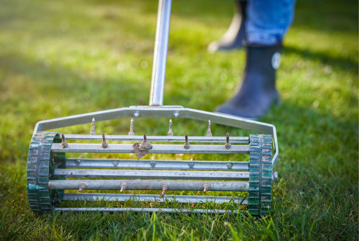 Po zimie trawnik wymaga odświeżenia. Najpierw usuń suche źdźbła i liście, a następnie wykonaj aerację (wystarczy użyć aeratora – ręcznego lub mechanicznego – przejechać nim po trawniku w różnych kierunkach, tworząc małe otwory w ziemi, aby poprawić dostęp powietrza i wody). Koszenie trawnika najlepiej przeprowadzić w drugiej połowie marca, gdy temperatura będzie stabilniejsza.