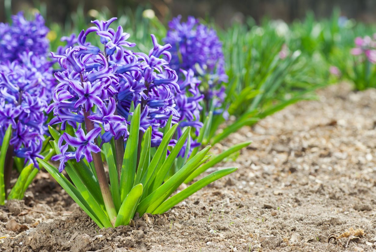 Hiacynty i tulipany – preferują nasłonecznione lub lekko zacienione stanowiska. Można je sadzić w rabatach lub wzdłuż ścieżek.