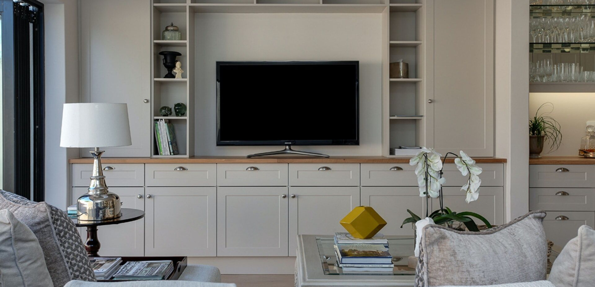 Warto też pomyśleć o meblach z funkcją praktyczną, takich jak regał lub szafki, które pomogą w przechowywaniu akcesoriów jadalnych i sprzętów audio-wideo.