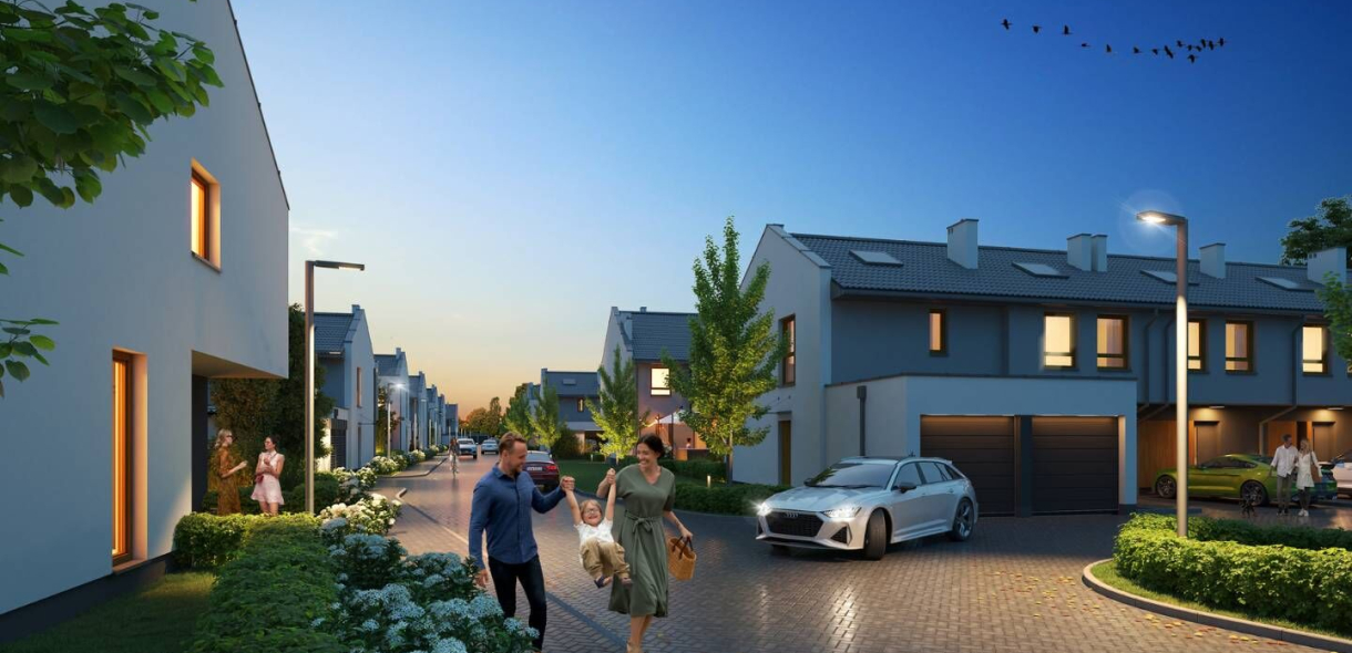 Oferujemy 106 nowoczesnych i komfortowych domów o metrażach od 64 do 82 m2 z przestronnymi ogrodami, zapewniając przyszłym mieszkańcom wygodę i bliskość natury.